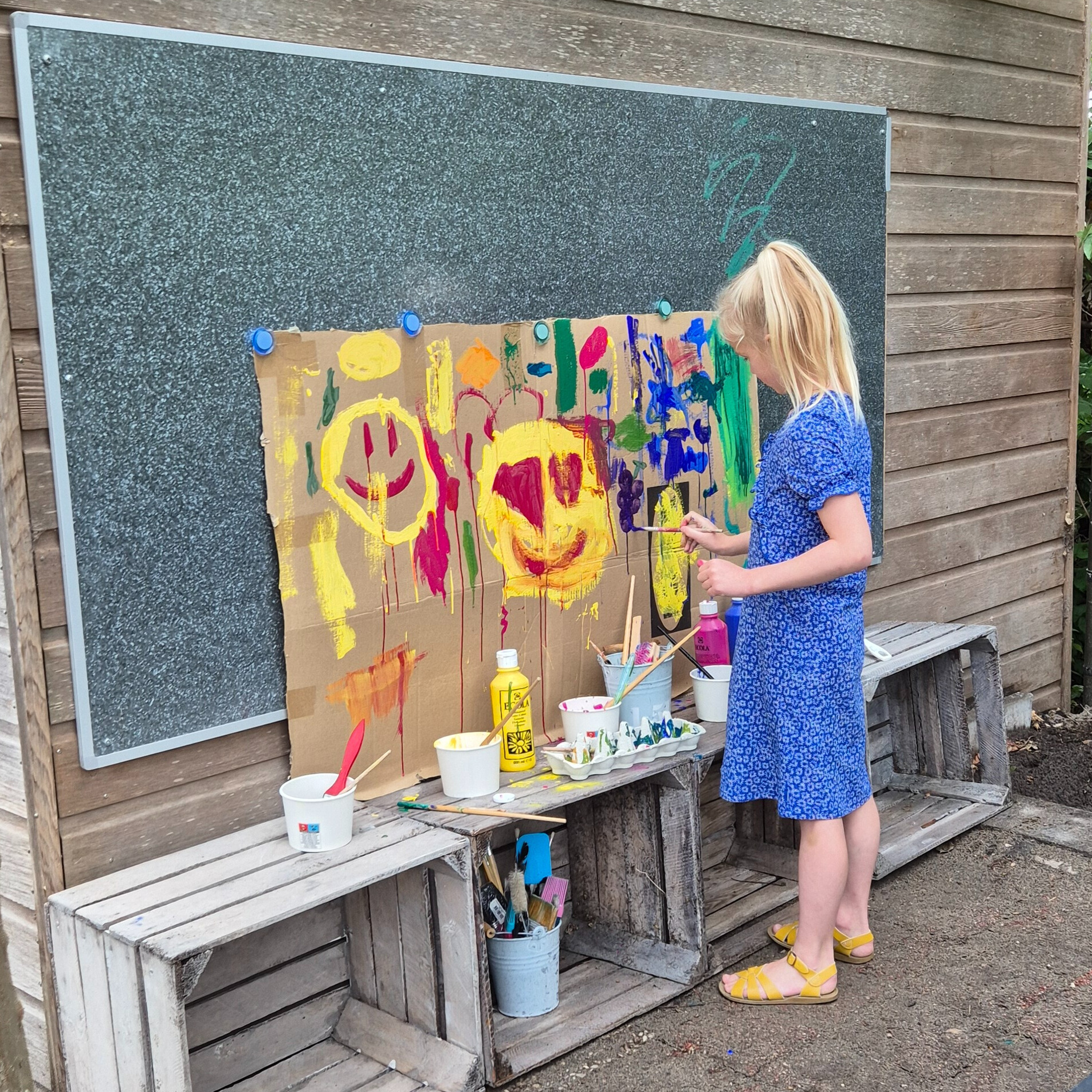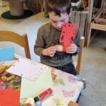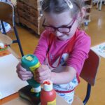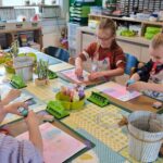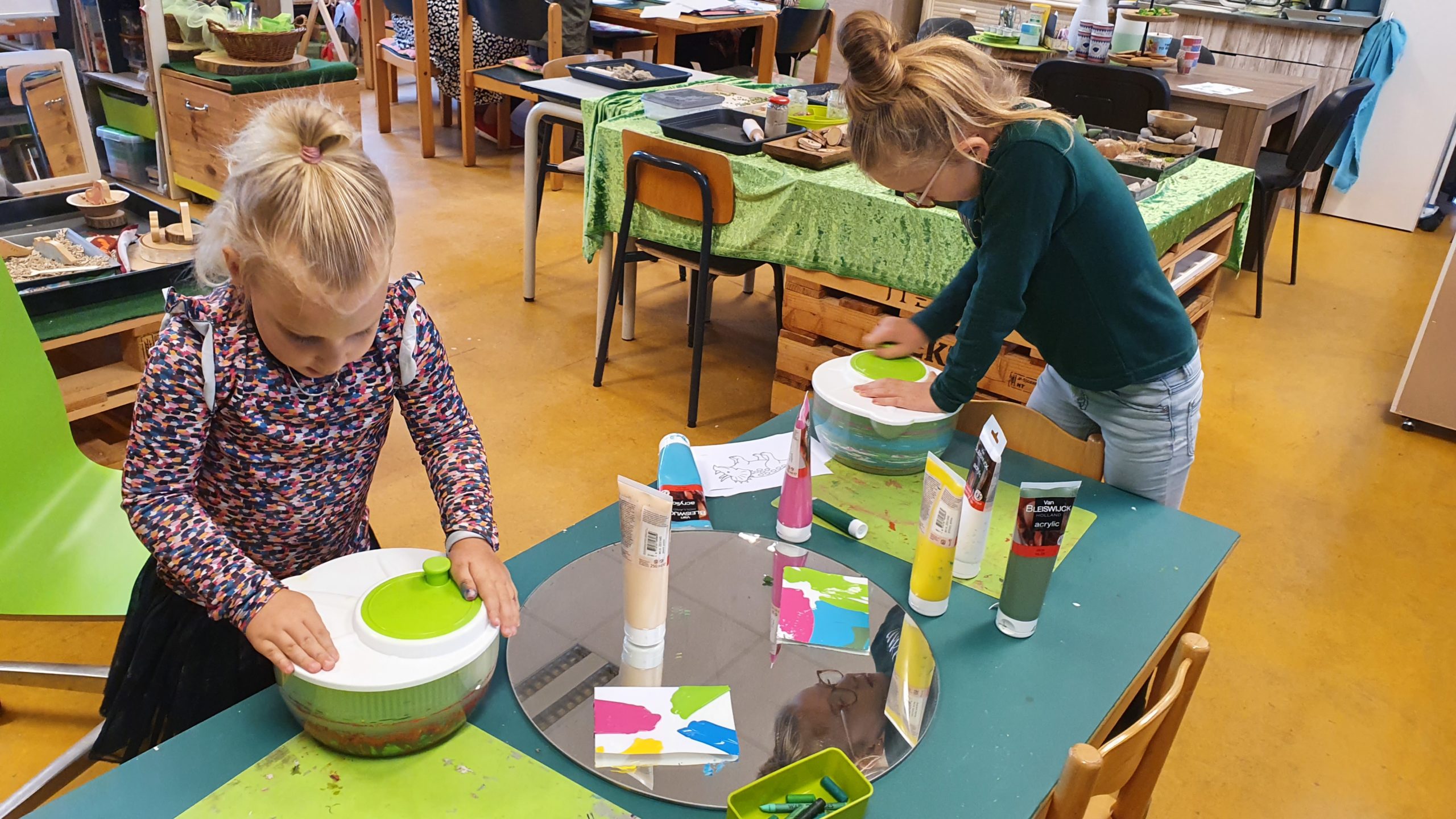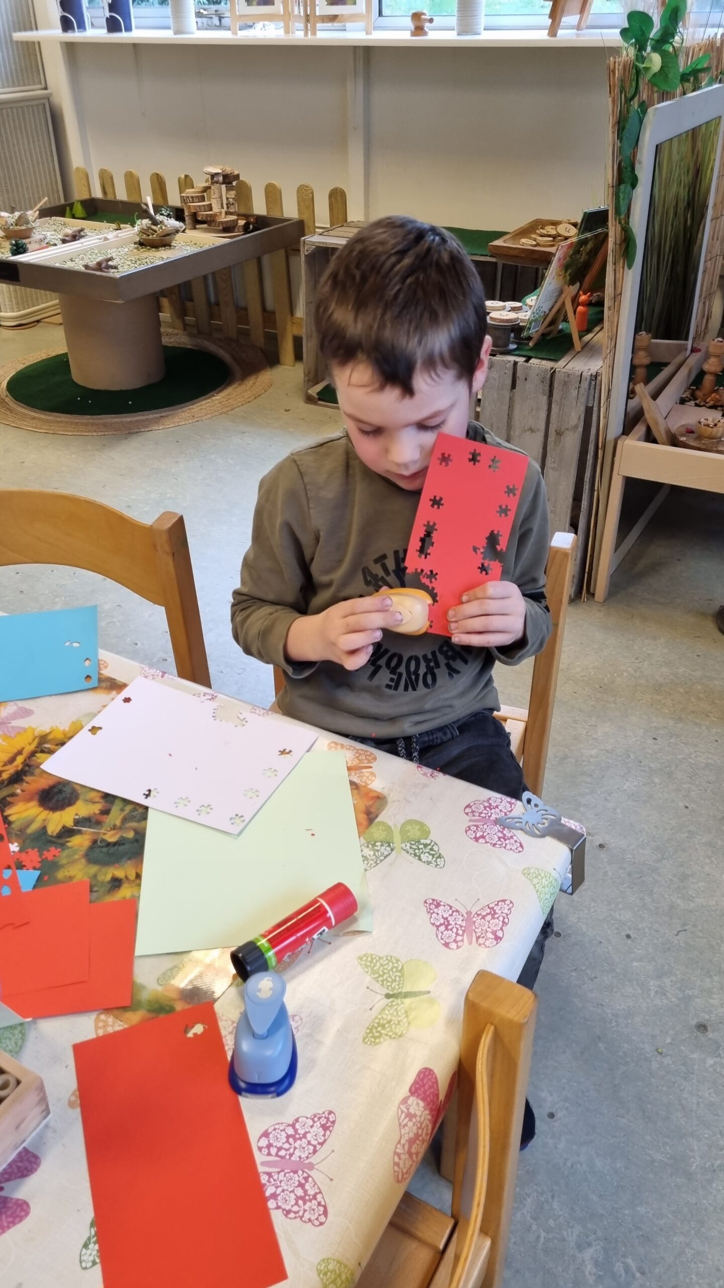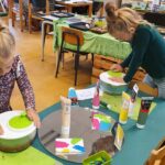 We werken met thema’s en de seizoenen en voegen verschillende materialen toe uit de natuur.